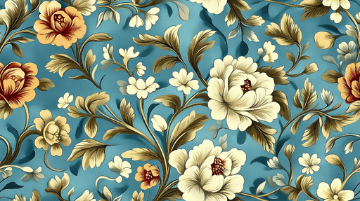 WonderMuralQuesta carta da parati shabby chic presenta un sumptuoso design floreale che combina tonalità di rosso e oro su uno sfondo blu rilassante, creando ...