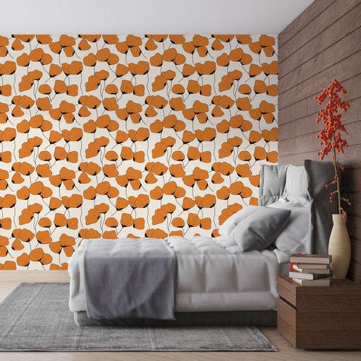 WonderMuralQuesta affascinante carta da parati murale presenta un motivo sottile di fiori arancioni accompagnati da tocchi di crema, che si alzano graziosamen...