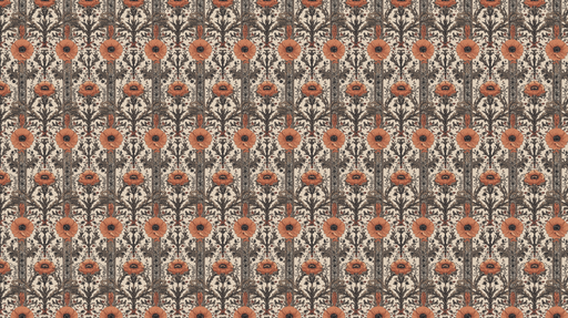 Visualizza tutti i dettagliCarta da parati con fiori arancioni | Fleuron stilizzati su sfondo crema