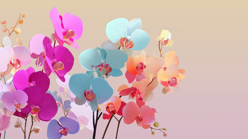 Visualizza tutti i dettagliCarta da parati orchidee | Un vivace bouquet di orchidee colorate su uno sfondo delicato