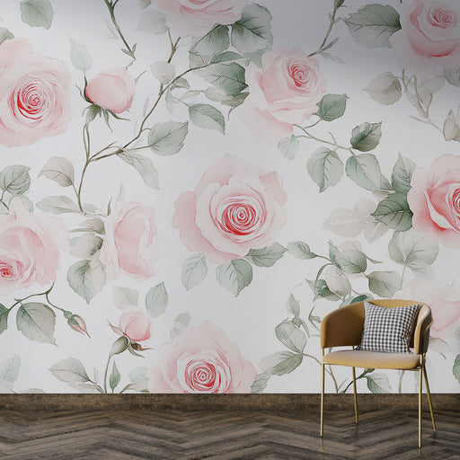 WonderMuralQuesta carta da parati murale incanta con il suo vibrante motivo floreale, con delicate rose rosa e foglie verdi vibranti. La texture generosamente...