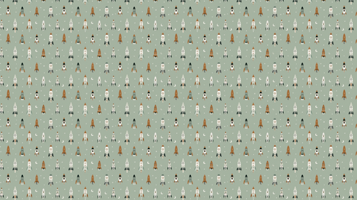 Visualizza tutti i dettagliCarta da parati con razzi | Un motivo giocoso di razzi colorati su uno sfondo verde pastello