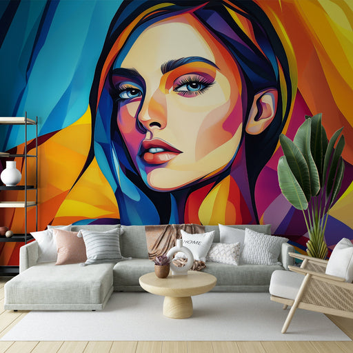 Carta da parati con volto astratto | Profilo semplice e linee fluide
