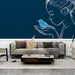 La nostra esclusiva Carta da parati murale mostra una affascinante composizione artistica, con un'elegante silhouette di un volto in profilo che tiene in mano un uccello blu. Lo sfondo blu scuro crea un contrasto sorprendente che fa risaltare i dettagli sottili dell'illustrazione. Questo design unico evoca un senso di tranquillità e connessione con la natura, ideale per spazi abitativi tranquilli o camere da letto per bambini.