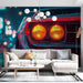 Questa affascinante carta da parati murale presenta una stilizzata auto d'epoca, valorizzata dalle scintillanti gocce di pioggia sotto le luci vibranti di una città notturna. I fari arancioni di questo modello classico si distinguono su uno sfondo al neon, creando un'atmosfera sia nostalgica che moderna.