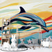 Questa affascinante carta da parati presenta un gioioso delfino che scivola attraverso onde colorate in vivaci tonalità di blu, arancione e giallo. Il design artistico e moderno dà un senso di movimento ed energia, ideale per portare un'atmosfera dinamica in qualsiasi stanza.