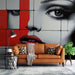 Per armonizzare questa carta da parati murale, optate per mobili e accessori in nero, bianco o tocchi di rosso. Questo migliorerà l'aspetto grafico del lavoro assicurando coerenza nella decorazione del vostro interno.