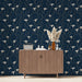 Carta da parati murale floreale blu notte | Eleganti fiori bianchi su uno sfondo scuro