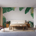 Questa carta da parati evidenzia un elegante motivo di foglie tropicali in sfumature di verde, creando un'atmosfera vibrante e naturale. Le foglie si dispiegano con grazia su uno sfondo bianco, portando una sensazione di freschezza e leggerezza in qualsiasi stanza.