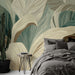 Carta da parati astratta fogliame | Motivi fogliari in tonalità morbide e stilizzate