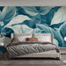 Carta da parati blu teal | Foglie rigogliose in tonalità rilassanti