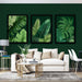 Carta da parati imitazione pittura | Trio di magnifiche foglie verdi su sfondo scuro