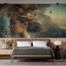 Le tonalità dorate e le nuvole vaporose aggiungono un tocco di sognante, rendendo questa carta da parati murale per camera da letto o ufficio una scelta perfetta per stimolare l'immaginazione e la contemplazione.