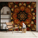 Questa carta da parati murale che mostra un motivo mandala ricco di colori offre una combinazione di tonalità calde che vanno dal rosso all'oro, accompagnate da sfumature di nero e verde. Questo design accattivante crea un'atmosfera dinamica e armoniosa, portando un tocco di energia creativa in qualsiasi stanza.