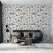 Carta da parati murale floreale | Motivo floreale e fogliame in toni tenui