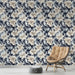 Carta da parati murale floreale | Motivo floreale delicato nei toni blu, crema e grigio