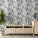 Carta da parati nera e bianca fogliame | Motivi delicati a foglia su sfondo chiaro