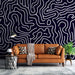 Questa carta da parati murale astratta presenta un motivo di linee bianche fluide che formano un labirinto irregolare su uno sfondo nero profondo. L'effetto grafico è al tempo stesso affascinante e misterioso, evocando un design moderno e minimalista pur rimanendo artistico.