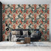 Per armonizzare il tuo arredamento, considera di abbinare questa carta da parati a colori neutri come beige, bianco sporco o verde oliva, che valorizzeranno i pattern vibranti senza sovraccaricare lo spazio. Gli accessori realizzati con materiali naturali, come legno o rattan, completeranno il look.