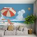 Gli ombrelloni colorati portano un tocco di fascino e comfort, mentre le palme aggiungono all'atmosfera tropicale. Questo invito decoro sarà perfetto per trasformare uno spazio in un rifugio di pace e relax, ideale per soggiorni, sale giochi o camere da letto.