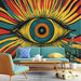 Scopri la nostra affascinante carta da parati murale con un occhio stilizzato circondato da linee colorate e dinamiche. Le sfumature vibranti di rosso, giallo e blu offrono un'atmosfera energica e moderna, perfetta per coloro che desiderano aggiungere un tocco unico al loro spazio.