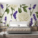 Carta da parati con rose e lavanda | Rose bianche e rami di lavanda viola