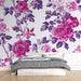 Carta da parati shabby chic | Esplosione di rose viola e rosa su sfondo bianco