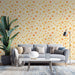 La nostra esclusiva carta da parati murale presenta un allegro motivo di solari disegnati delicatamente in tonalità di giallo e arancione, creando un'atmosfera calda e soleggiata. Lo sfondo crema aggiunge un tocco di leggerezza, mettendo in risalto i motivi giocosi che evocano felicità e ottimismo.