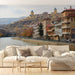 Le tonalità armoniose delle facciate e il fiume sottostante creano un'atmosfera tranquilla e affascinante. Questo paesaggio urbano Carta da parati è la scelta perfetta per coloro che desiderano portare un senso di viaggio e scoperta nei loro spazi interni.