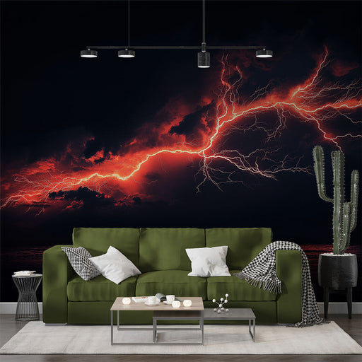 Questa affascinante carta da parati presenta uno spettacolare display di fulmini che illuminano un cielo tempestoso, creando un'atmosfera intensa e drammatica. I contrasti tra le tonalità scure e la luce brillante dei fulmini portano una sensazione di potenza ed energia a qualsiasi stanza.