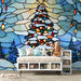 Questa affascinante carta da parati murale presenta un vetrata raffigurante un maestoso albero di Natale decorato con luci colorate, circondato da un paesaggio invernale rilassante. I colori vivaci e luminosi contrastano magnificamente con i toni freddi della neve e del cielo, creando un'atmosfera festosa e calda.