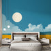 Le nuvole bianche leggermente disegnate aggiungono un tocco di leggerezza al design, rendendo questa carta da parati ideale per portare un tocco di natura in qualsiasi spazio, che si tratti di un accogliente soggiorno o di una rilassante camera da letto.
