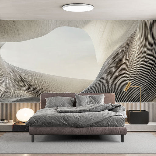 WonderMuralDeze foto behang heeft een abstract ontwerp met harmonieuze rimpels die een gevoel van vloeibaarheid oproepen. De natuurlijke tinten, variërend van...
