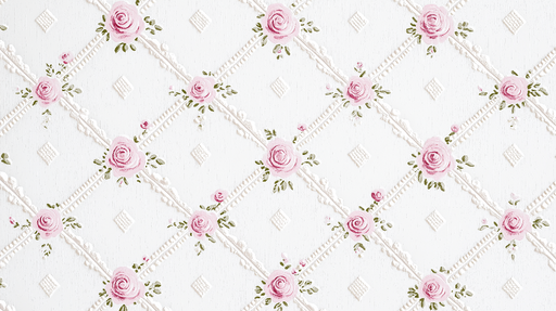 WonderMuralOnze shabby chic foto behang biedt een charmant patroon van roze rozen, elegant gerangschikt in een diamantontwerp. De witte achtergrond benadrukt ...
