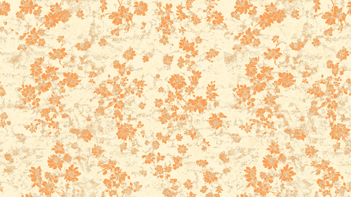 WonderMuralDeze shabby chic foto behang heeft een charmant patroon van oranje bloemen die delicaat zijn getekend op een zachte crèmekleurige achtergrond, waar...