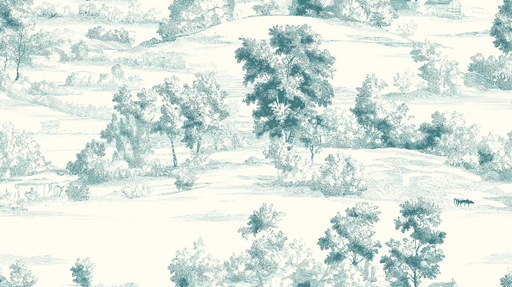 WonderMuralDeze shabby chic foto behang roept een pastorale landschap op van delicate schoonheid met zijn patronen van gestileerde bomen en weelderige struike...
