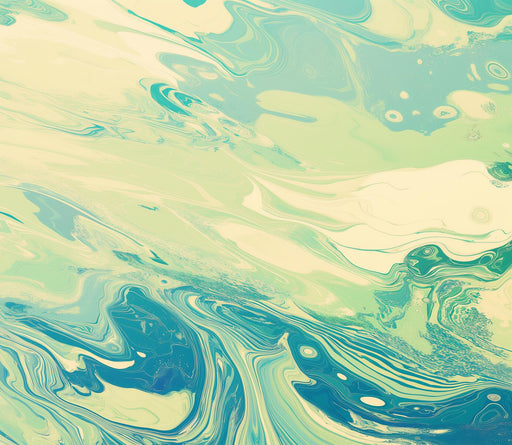 Art by SiennaDeze behang Turquoise Foam heeft abstracte patronen die doen denken aan oceaangolven. De tinten turquoise, lichtblauw en wit creëren een boeiend ge...