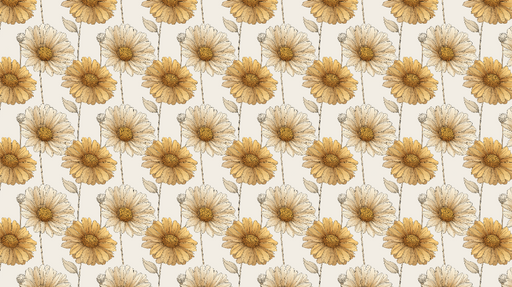 Alle gegevens bekijkenFoto Behang gele bloemen | Gouden madeliefjespatroon op een crèmekleurige achtergrond