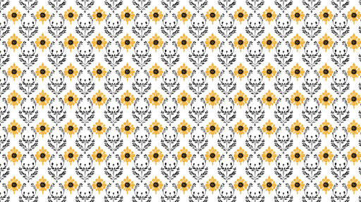 Alle gegevens bekijkenFoto Behang bloemen geel en zwart | Gestileerde bloemenpatronen op een witte achtergrond