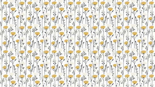 WonderMuralDeze behang heeft een charmant patroon van kleine gele bloemen delicaat getekend, omringd door fijne stelen, op een zachte crèmekleurige achtergron...
