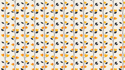 WonderMuralDeze levendige Foto Behang heeft een retro bloemenpatroon versierd met gestileerde bloemen in oranje, geel en zwart, wat tijdloze charme oproept. D...