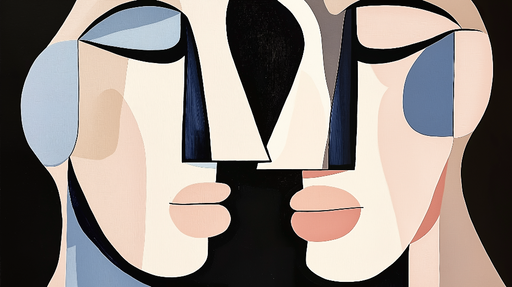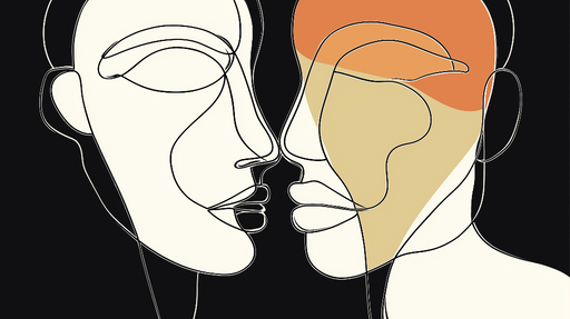 Alle gegevens bekijkenFoto Behang abstract gezicht | Minimalistisch ontwerp van verstrengelde gezichten