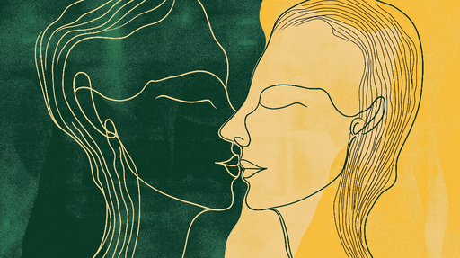 WonderMuralDeze foto behang heeft een minimalistisch ontwerp met een lineair patroon dat twee vrouwelijke profielen afbeeldt die elkaar aankijken. De strakke ...