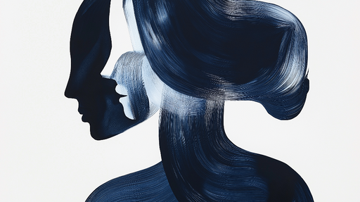 WonderMuralDeze unieke foto behang heeft een abstract ontwerp dat artistieke silhouetten van gezichten in elegante tinten blauw laat zien. De vloeiende en del...