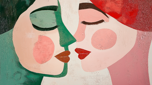 Alle gegevens bekijkenFoto Behang abstracte gezichten | Twee kussende gezichten in pasteltinten