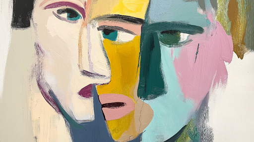 Alle gegevens bekijkenFoto Behang abstract | Gestileerde gezichten in zachte kleuren op een donkere achtergrond