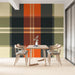 Dit foto behang heeft een dynamisch en gedurfd geruit patroon, waarin tinten helder oranje, donkergrijs en beige samensmelten. De scherpe lijnen en levendige kleuren brengen een vleugje moderniteit met zich mee en roepen tegelijkertijd een klassieke charme op. De herhaling van patronen zorgt voor een dynamisch visueel effect dat een ruimte kan omtoveren tot een warme en uitnodigende plek. Deze ontwerp past perfect in eigentijdse of industriële interieurs, waarbij het een vleugje heldere kleur toevoegt terwijl het toch ingetogen blijft. Het kan ook worden gebruikt in rustieke ruimtes voor een modern contrast. De dominante kleuren van dit foto behang, zoals oranje en grijs, passen goed bij neutrale tinten zoals gebroken wit of beige, of bij natuurlijke materialen zoals licht hout. Voor een vergelijkbare stijl, verken andere geometrische patroon foto behangen of ontwerpen geïnspireerd door Schotse textiel, perfect om karakter toe te voegen aan elke kamer. Het advies van WonderMural.com: Gebruik dit foto behang op een enkele muur om een accentmuur te creëren, en combineer het met minimalistisch meubilair om het patroon volledig tot uiting te laten komen.