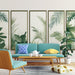 Ons foto behang heeft een set van tropische blad patronen in rijke en gevarieerde tinten groen, die een natuurlijke en rustgevende sfeer oproepen. Elk paneel is delicaat omlijst, wat een vleugje elegantie en verfijning aan je ruimte toevoegt.