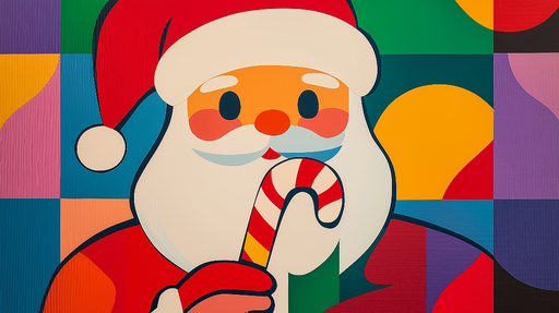 Deze levendige en vrolijke foto behang heeft een Kerstman in felle kleuren, met een gestreepte snoep vasthoudend. Het moderne en speelse ontwerp br...
