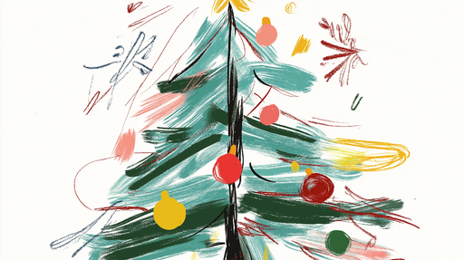 Deze foto behang illustreert een delicaat geschilderde Kerstboom, versierd met kleurrijke accenten die een feestelijke en vrolijke sfeer brengen. D...